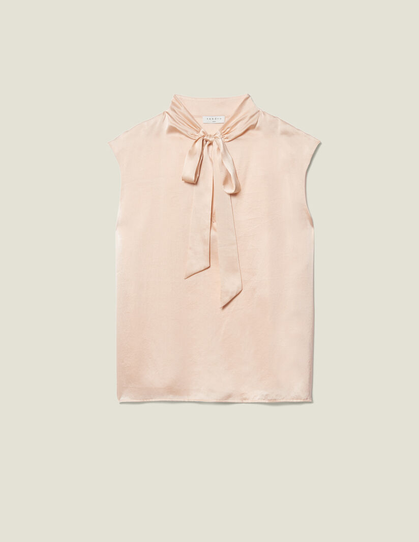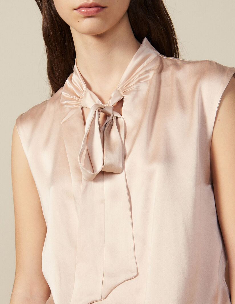 산드로 보우 칼라 실크 탑 $245 → $73.5